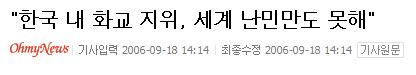 화교가 난민이라면, 한국인은 난민보다 아래인 개돼지 수준이구만