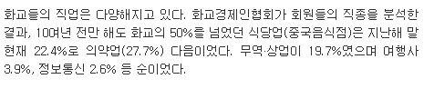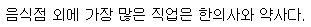 한의사 약사를 합치면(27.7%), 1위인 요식업(22.4%)을 뛰어넘는 직업분포도를 보여줘