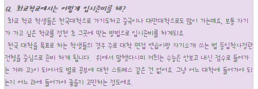 1. 화교수험생은 입시스트레스없는 편한 10대생활을 보낼수 있고